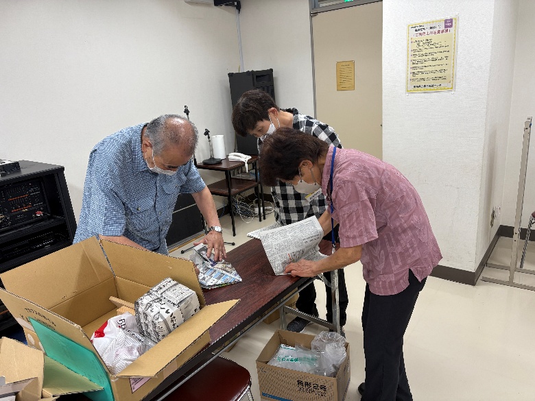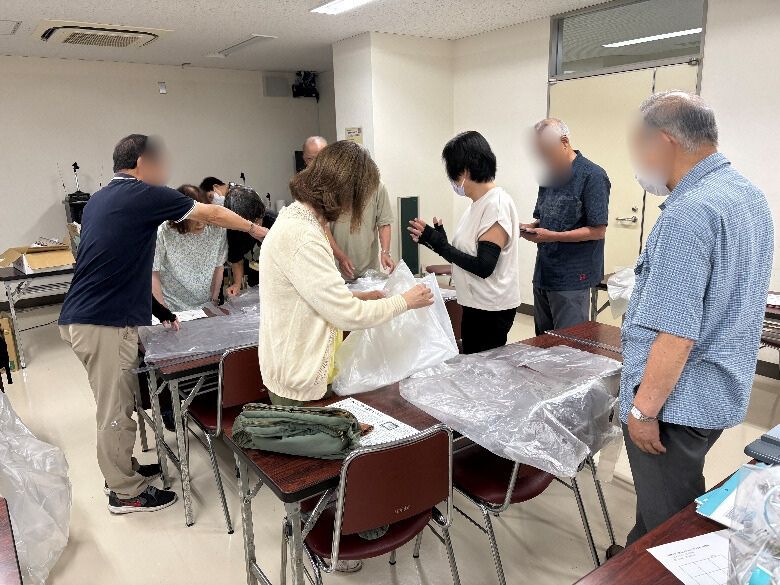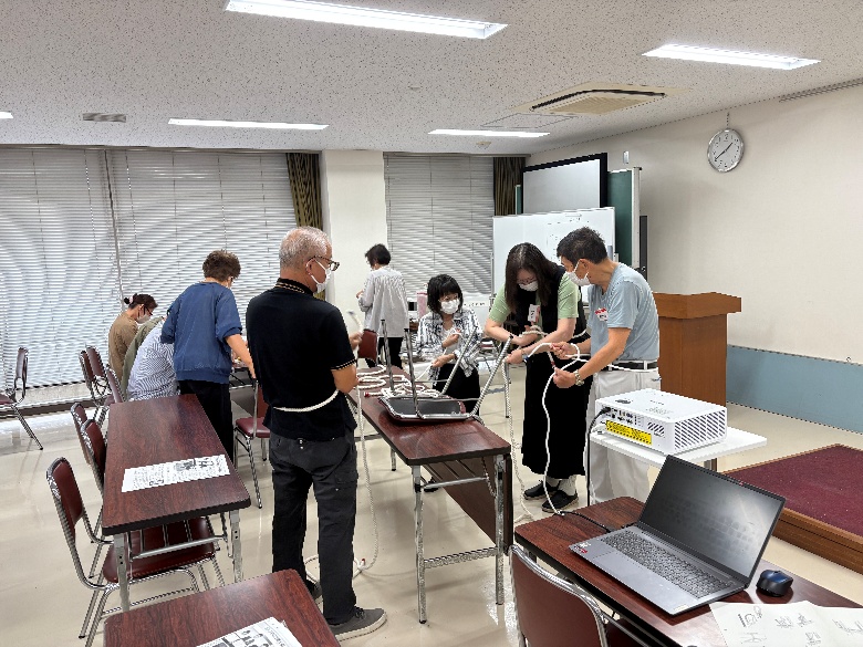 4. 出前講座体験学習の実習訓練(ロープワーク、ポリ袋レインコート、新聞紙ゴミ入れ