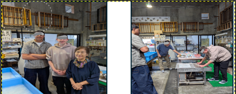 翌21日(日)は受け入れ家庭が、一日をどのように過ごすかを計画しなければなりませんでした。増田宅では午前中音楽会をし、その後阿波おどり会館や眉山に車で移動。中島は吉野川市山川町の阿波和紙伝統産業会館で、10時半に予約しておいた和紙の紙すきを12時半頃まで3人で楽しみました。